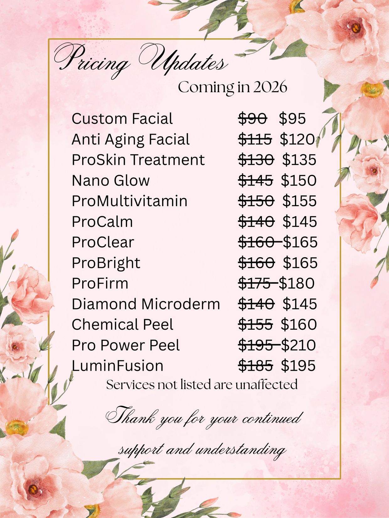 Natural Beauty Esthetics is dedicated to fairness and transparency in pricing policies. In response to the never ending cycle of inflation, we are introducing a minor price increase to cover the increased costs of business. Only services affected by increases are included in pricing updates.